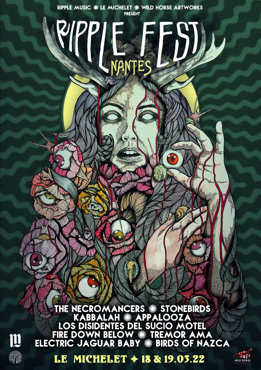 Ripple Music presents the first edition of RippleFest France, the stoner and doom festival to take place on March 18-19th at Le Michelet in Nantes, with Los Disidentes Del Sucio Motel, The Necromancers, Stonebirds, Kabbalah, Appalooza, Tremor Ama, Fire Down Below, Electric Jaguar Baby and Birds Of Nazca.